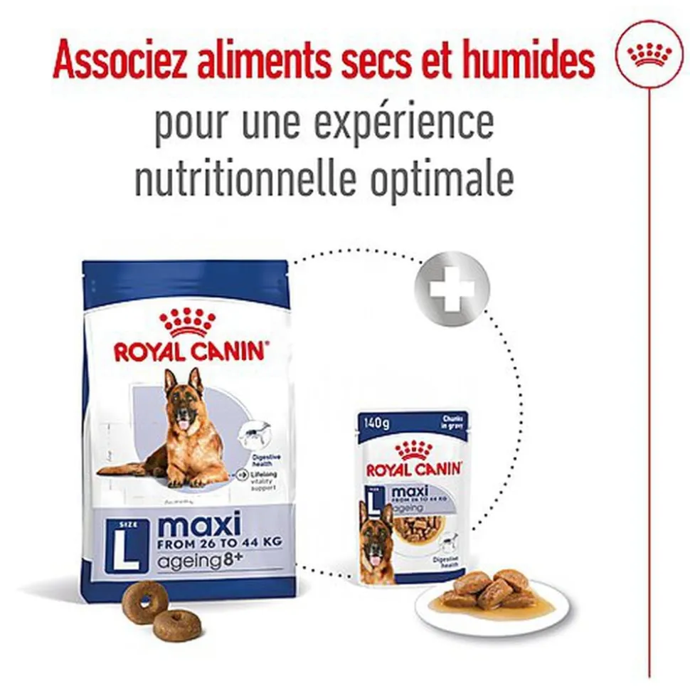 AIDE A BIEN VIEILLIR : Nutriments sélectionnés pour aider le chien âgé de grande taille à bien vieillir. Contient des EPA-DHA et un complexe exclusif d’antioxydants aidant à lutter contre les radicaux libres.