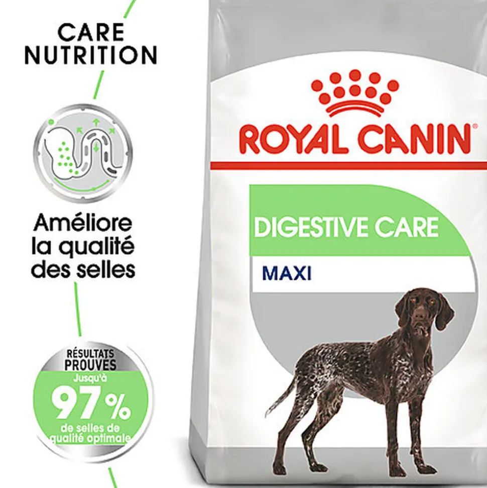 ROYAL CANIN® Digestive Care Maxi est spécialement élaboré grâce à notre technique de cuisson intelligente qui assure une meilleure assimilation des nutriments. De plus, nos contrôles qualité réguliers et rigoureux attestent de la haute digestibilité de cet aliment.