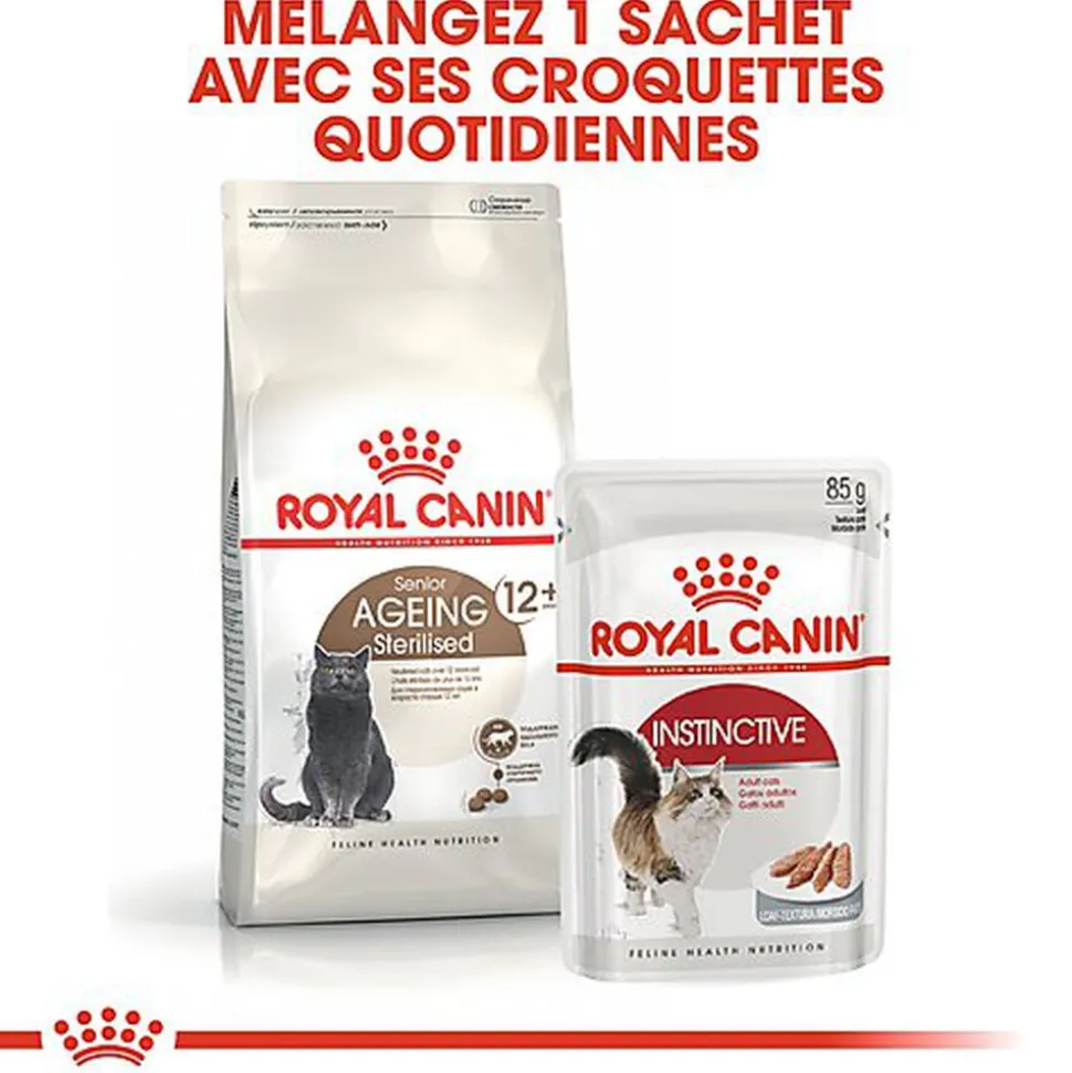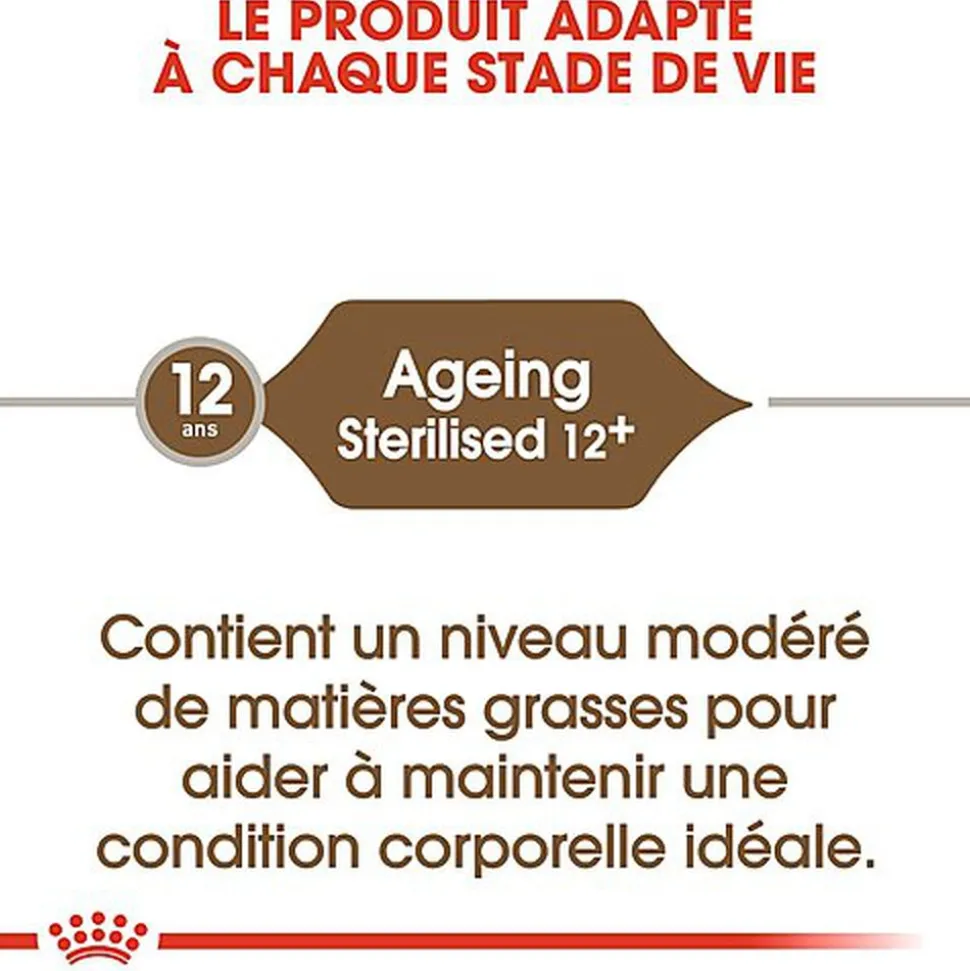 AIDE A BIEN VIEILLIR : Pour aider le chat à bien vieillir, STERILISED 12+ contient notamment un complexe d’antioxydants (vitamines, lycopène, polyphénols de thé vert et de raisins) et des niveaux renforcés en acides gras essentiels.
