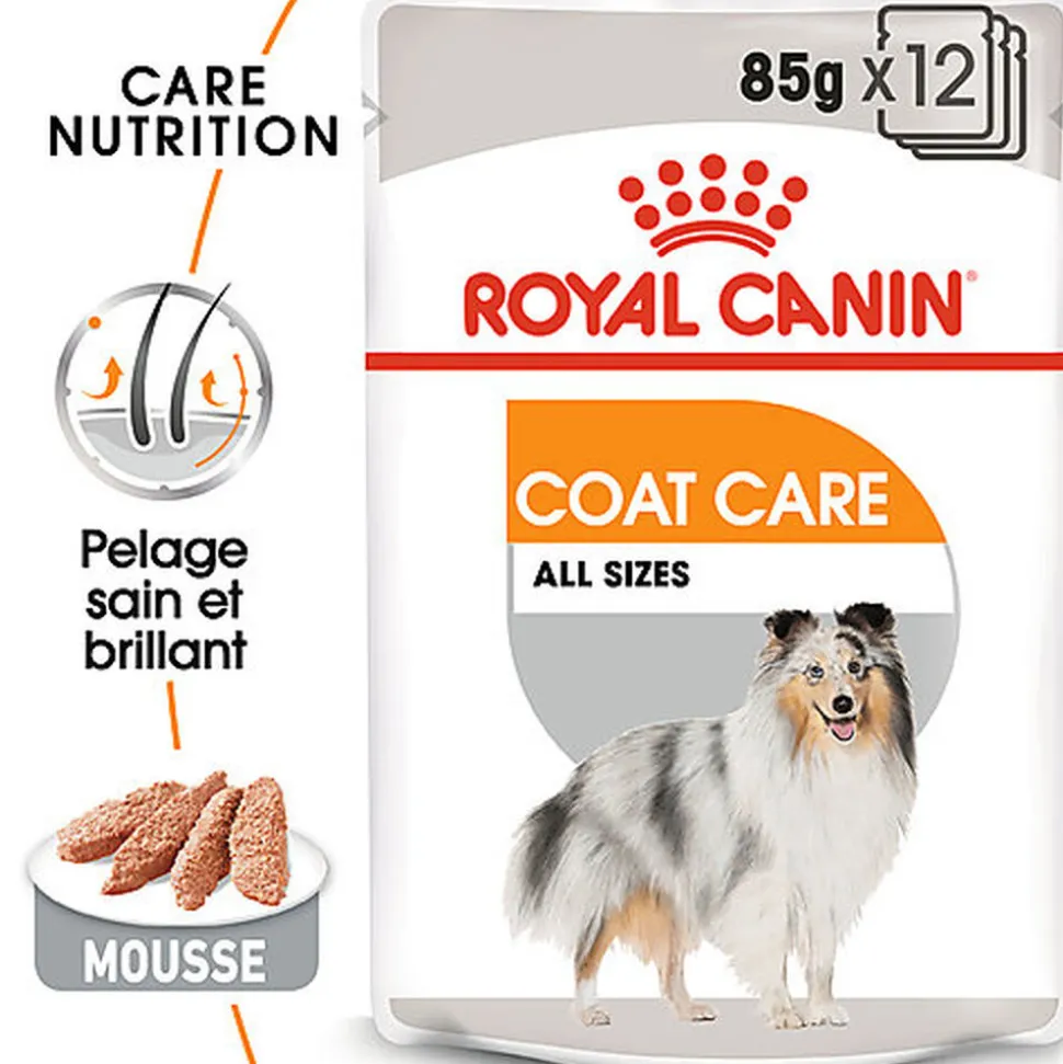 L’éclat du pelage de votre chien est un signe de sa bonne santé. Un pelage riche et soyeux témoigne de l’efficacité de son alimentation. ROYAL CANIN® Coat Care mousse maintient la qualité et la vigueur de son pelage, pour qu’il conserve son apparence parfaite et sa santé optimale. Cette alimentation complète et savoureuse est enrichie en acides gras oméga-3 et 6, ainsi qu’en huile de bourrache GLA, des nutriments qui contribuent à nourrir la peau et le pelage de votre chien.