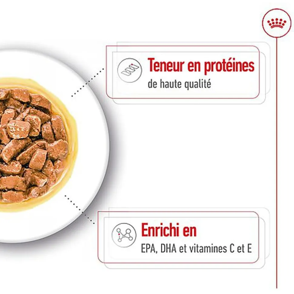 Adapté aux chiens de taille moyenne âgés de 10 ans et plus et pesant entre 11 et 25 kg, ROYAL CANIN® Medium Ageing 10+ en sauce a été formulé pour satisfaire tous les besoins nutritionnels des chiens comme le vôtre. ROYAL CANIN® Medium Ageing 10+ en sauce contient un complexe exclusif d’antioxydants.
