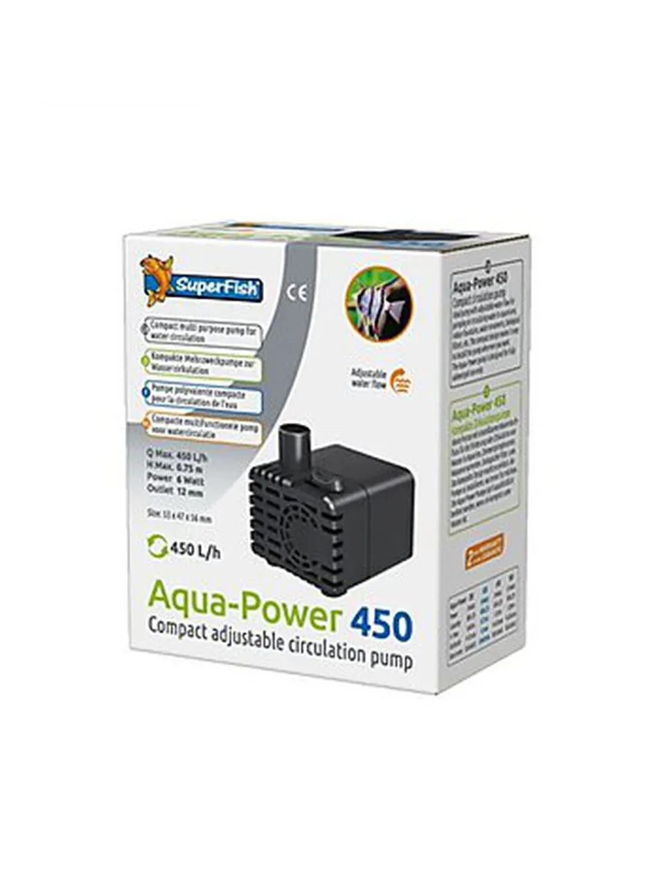La pompe à eau Superfish a été conçue pour être totalement immergée dans le bac, pour plus de confort et d’efficacité. Puissante, elle a un débit de 450l/h pour offrir un brassage optimal de l’eau dans votre bac. Le brassage anime le bac en créant des courants et favorise la circulation de l’air pour une meilleure oxygénation. Poissons et plantes seront ravis de cette nouvelle acquisition. Pour aquarium de 100 à 200 L. Embout fourni.