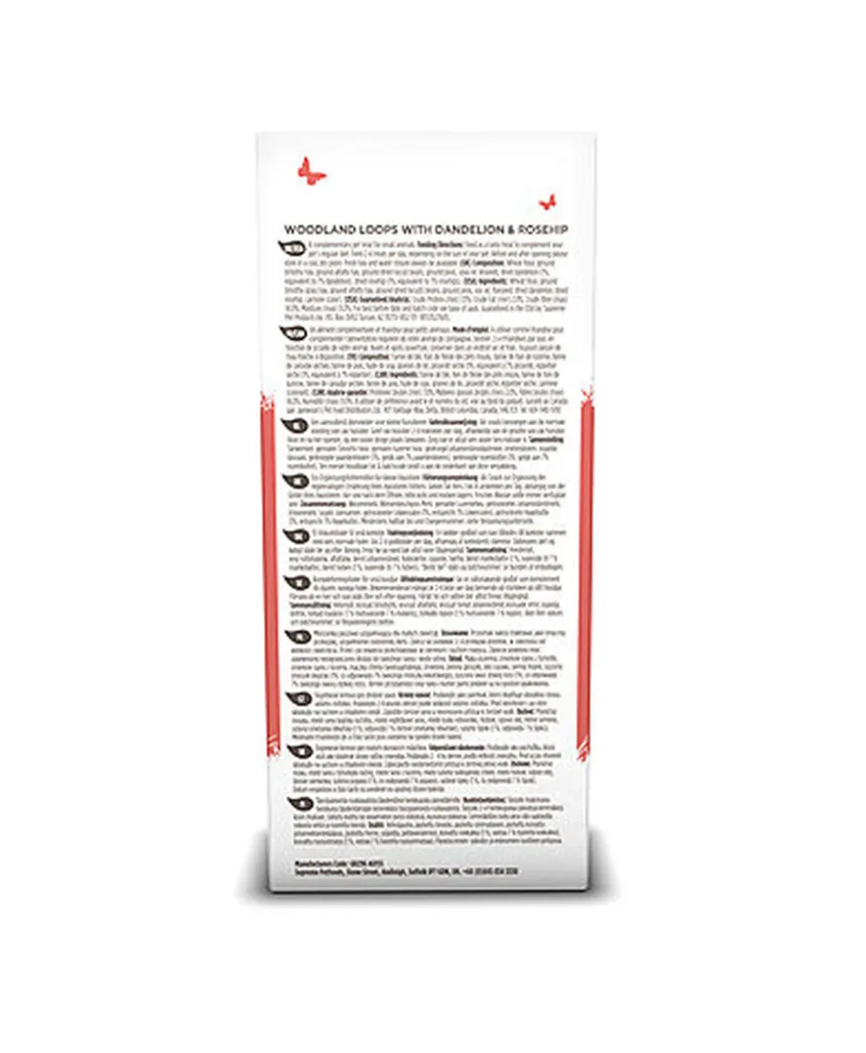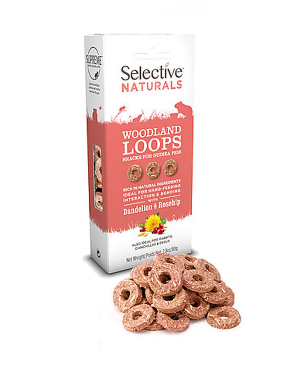 Les friandises Selective Naturals Woodland Loops églantier pissenlit sont savoureuses et nutritives et conviennent parfaitement aux lapins, cobayes, chinchillas et octodons. Avec une teneur élevée en fibres et sans sucres ajoutés, les Woodland loops sont sont à base d’églantier et de pissenlit.