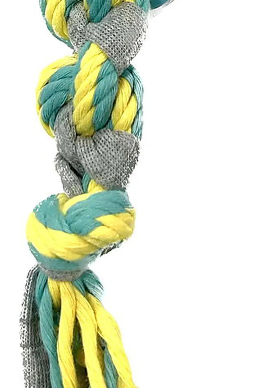 Cette corde est idéale pour jouer et pour répondre aux besoins de mastication de votre chiot. Elle est conçue pour résister aux crocs et fera le bonheur de votre fidèle compagnon qui pourra s’amuser à la tirer et à la mastiquer. Il sera également stimulé grâce au petit jouet en plastique accroché sur celle-ci.