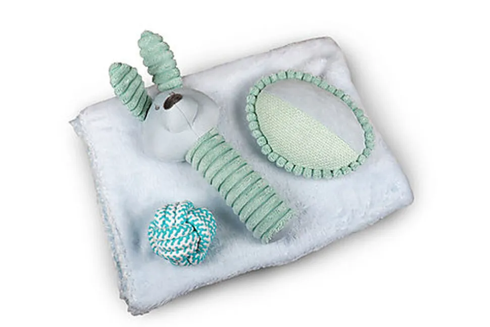 La couverture toute douce offre un sentiment de protection à votre chiot. La corde est idéale pour répondre à son besoin de mastication et d’activité physique en jouant avec lui. La peluche permet de le stimuler grâce à son couinement et peut aussi lui servir de doudou réconfortant.