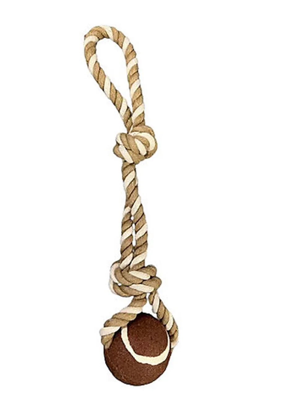 La Corde avec Boucle et Balle Tootoy! ajoute une nouvelle dimension à vos jeux de tir à la corde. La balle de tennis apporte une texture supplémentaire dans laquelle votre chien appréciera planter ses dents. Elle permet également d’ajouter un poids qui rendra le jouet plus facile à lancer. La poignée formée par la boucle en corde facilitera également le lancer.