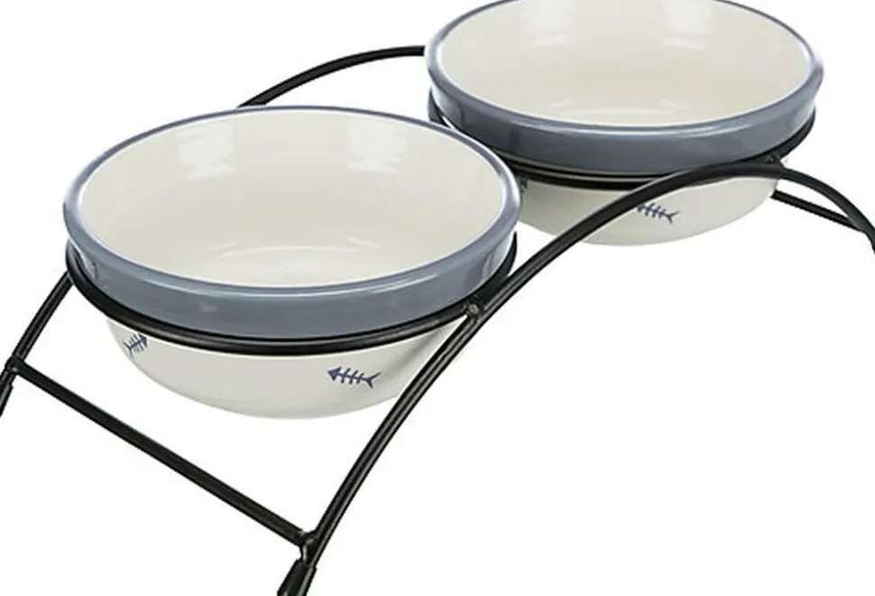 - 2 gamelles en céramique avec support