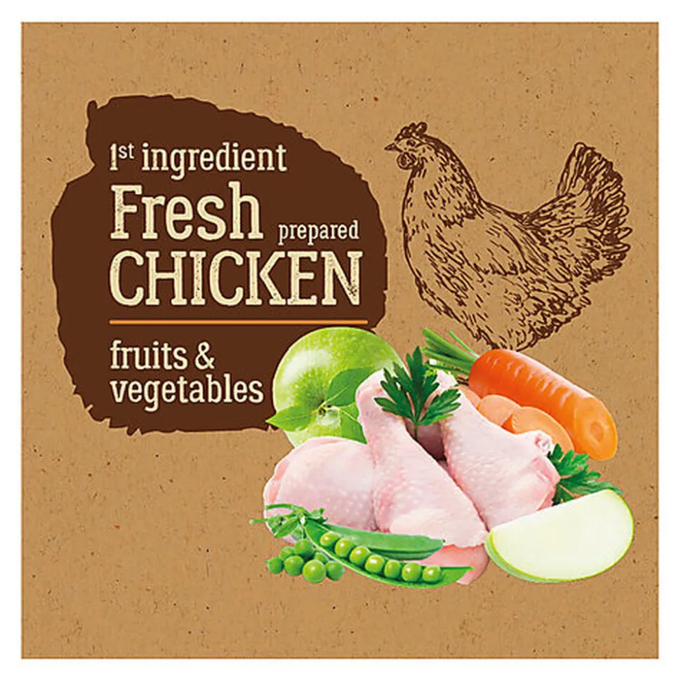 | Composition | Poulet frais* (26%), Protéines de volaille déshydratées, Riz brun* (12%), Graisse de volaille, Protéines animales déshydratées, Pois* (7,5%), Orge* (4%), Pulpe de betterave*(4%), blé*(4%), Maïs*(4%), Hydrolysées de protéines animales, Minéraux, Fibres végétales* (1%), Huile de saumon (1%), Graines de lin* (1%), Pulpe de chicorée comme source de FOS* (1%), Carottes déshydratées* (0,5%), Pomme déshydratée* (0,5%), Tomate déshydratée* (0,5%), Farine de canneberge* (0,1%), Paroi de levure de bière comme MOS et source de bêta-glucanes* (0,075%), Glucosamine (0,045%) , Sulfate de chondroïtine (0,035%), Yucca schidigera* (0,0180%). * Avec des ingrédients naturels |