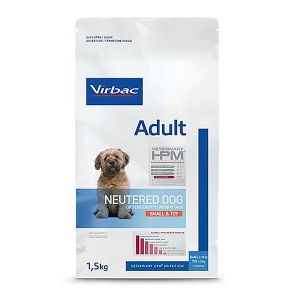 L’aliment Veterinary HPM Adult Neutered Dog Small & Toy est destiné au chien de petite race stérilisé, à partir de 10 mois.