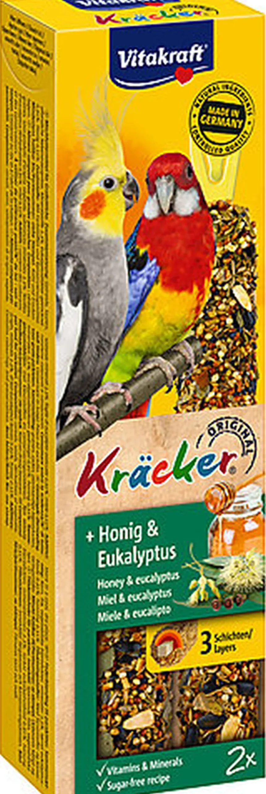 | Composition | céréales, graines, sous-produits végétaux, minéraux, feuilles d’eucalyptus coupées, miel 0,51% |