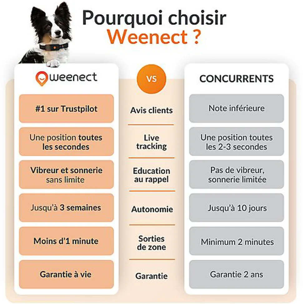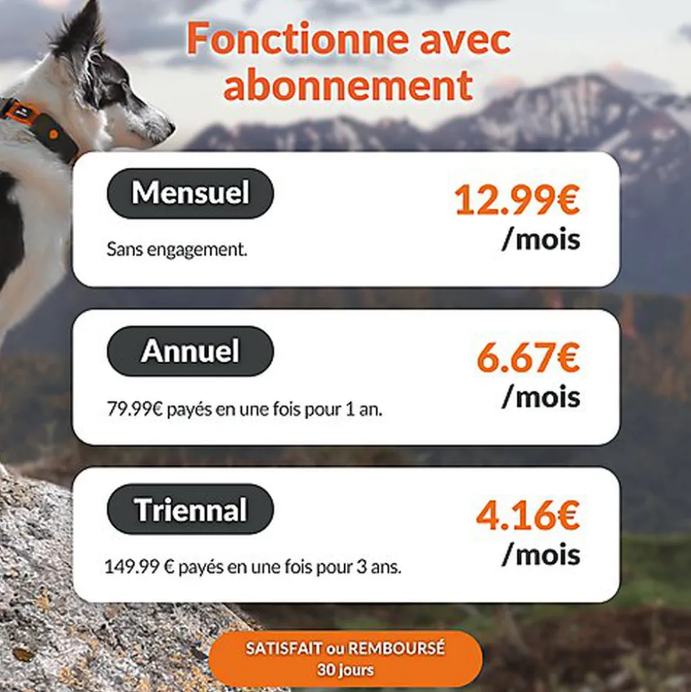 Le collier GPS pour chien conçu pour les aventures les plus extrêmes : lampe torche ultra-puissante, 3 semaines d’autonomie, antenne XL pour une couverture de 99% du territoire.