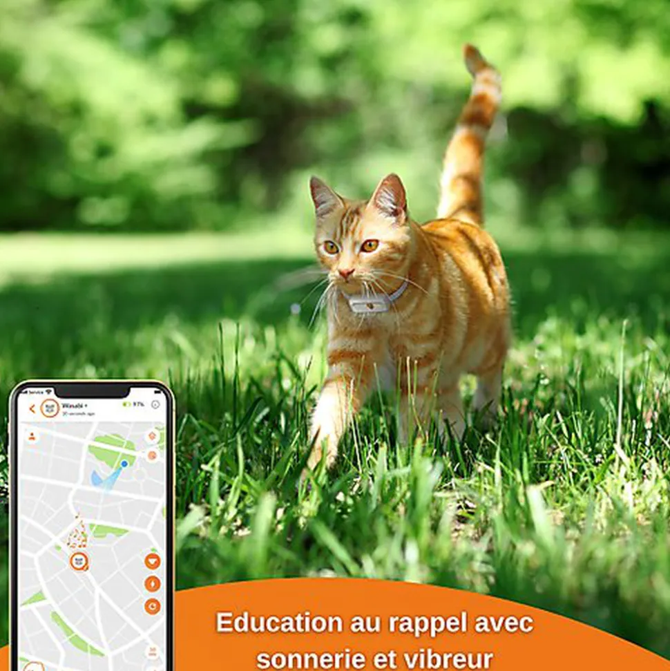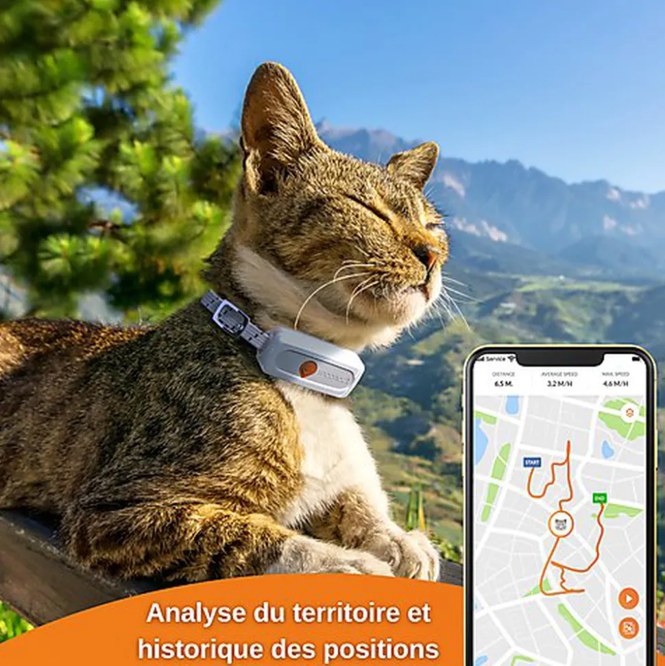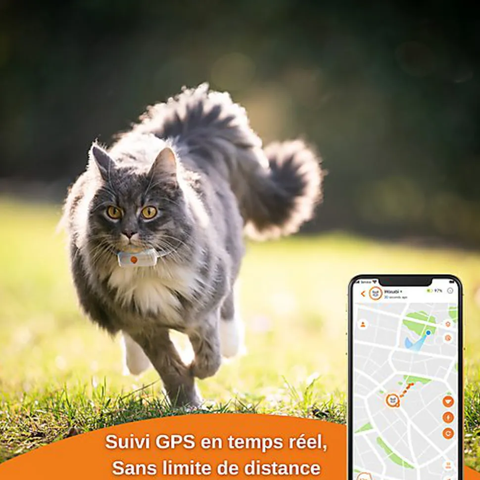 Le plus petit traceur GPS pour chat du marché. Weenect Cats est un collier GPS pour chat qui permet aux maîtres de suivre sa position depuis leur téléphone. La localisation se fait en temps réel et en illimité, vous savez donc à tout moment où se trouve votre chat