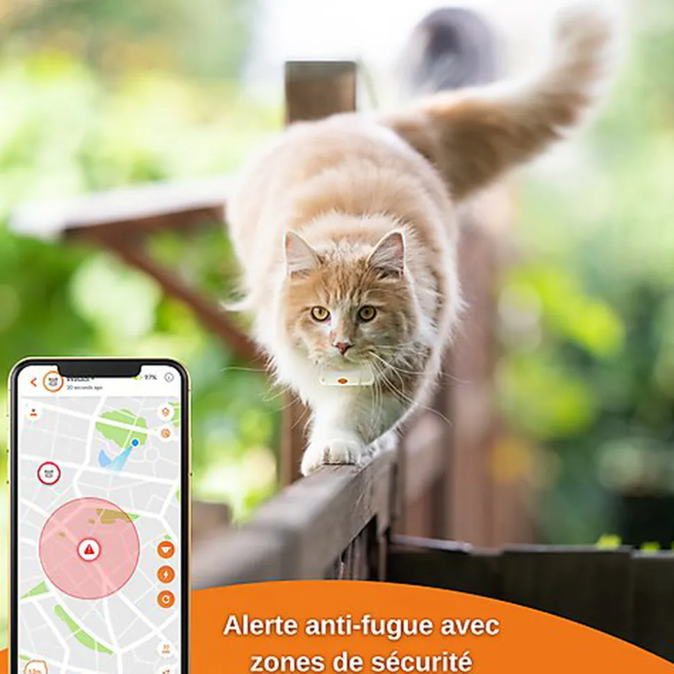 | Alerte anti-fugue | Créez des zones de sécurité. Vous êtes prévenu sur votre téléphone si votre animal en sort ou y entre. |