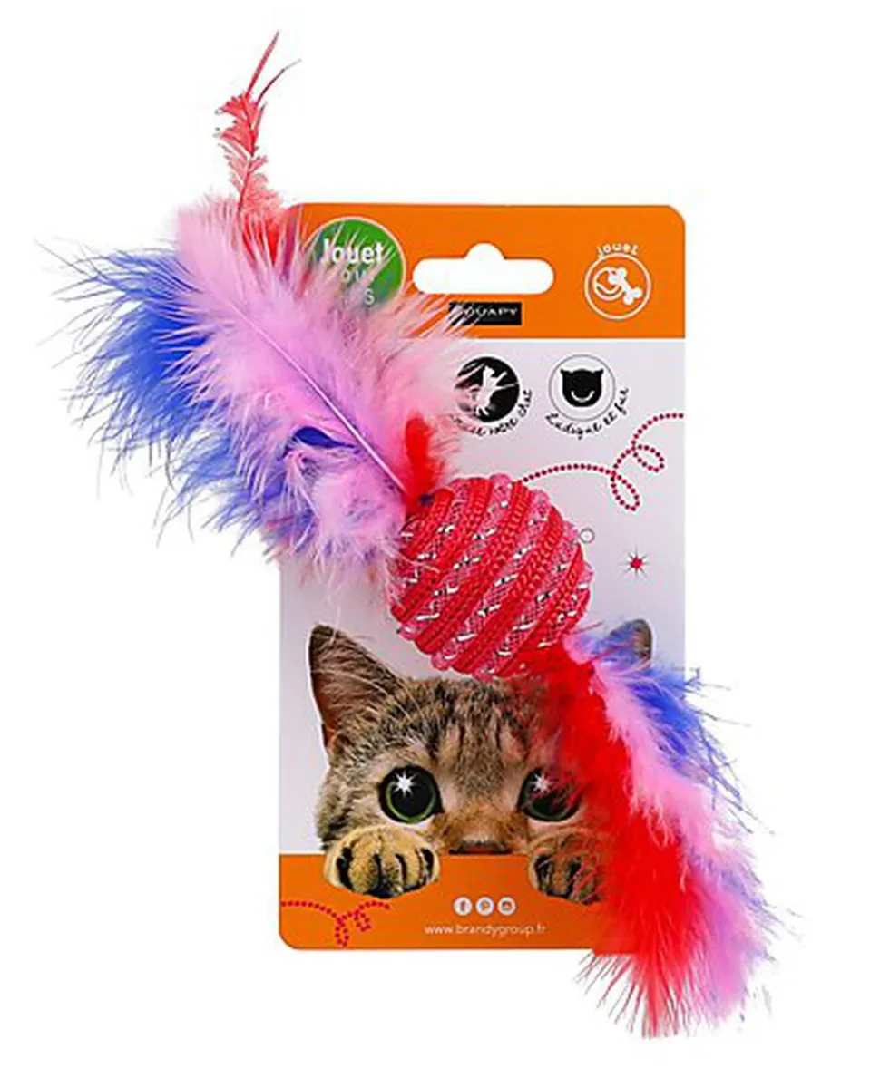 Jouet pour chat en forme de balle avec plumes à chaque extrémité et grelot à l’intérieur, les différentes textures et couleurs rendront ce jouet incontournable pour de longues heures de jeu et de complicité avec votre chat.