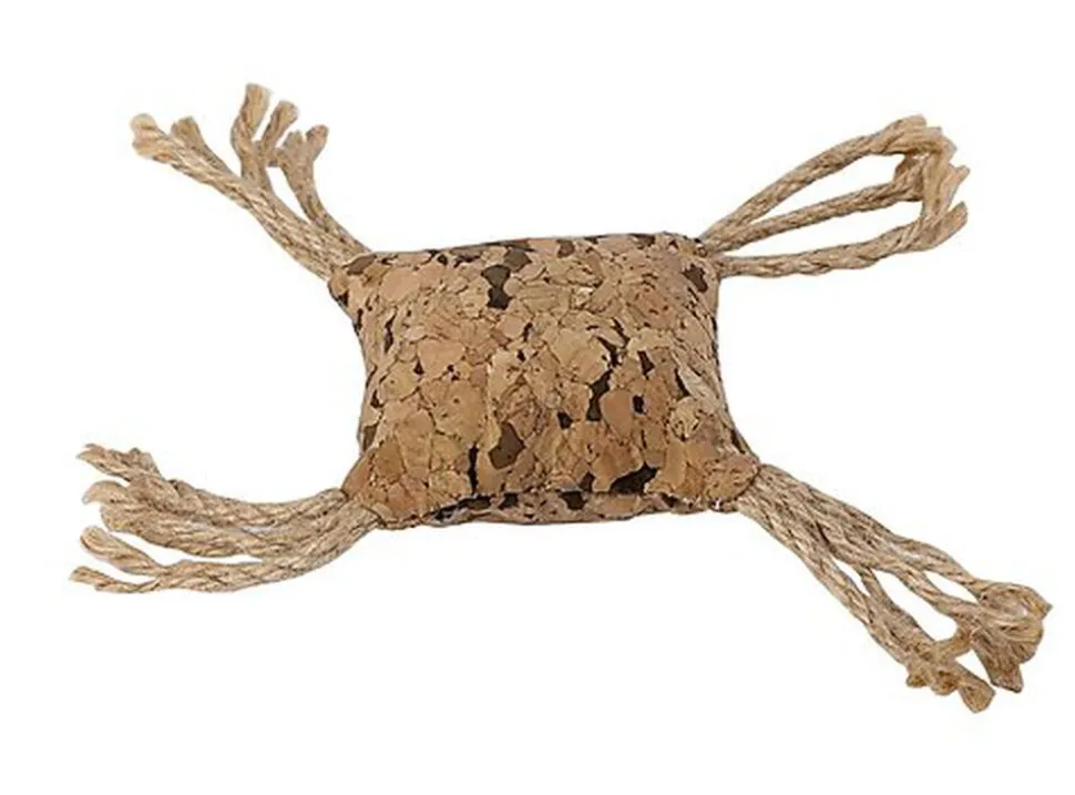 Jouet pour chat en forme de carré en liège avec corde, pour de longues heures de jeu.