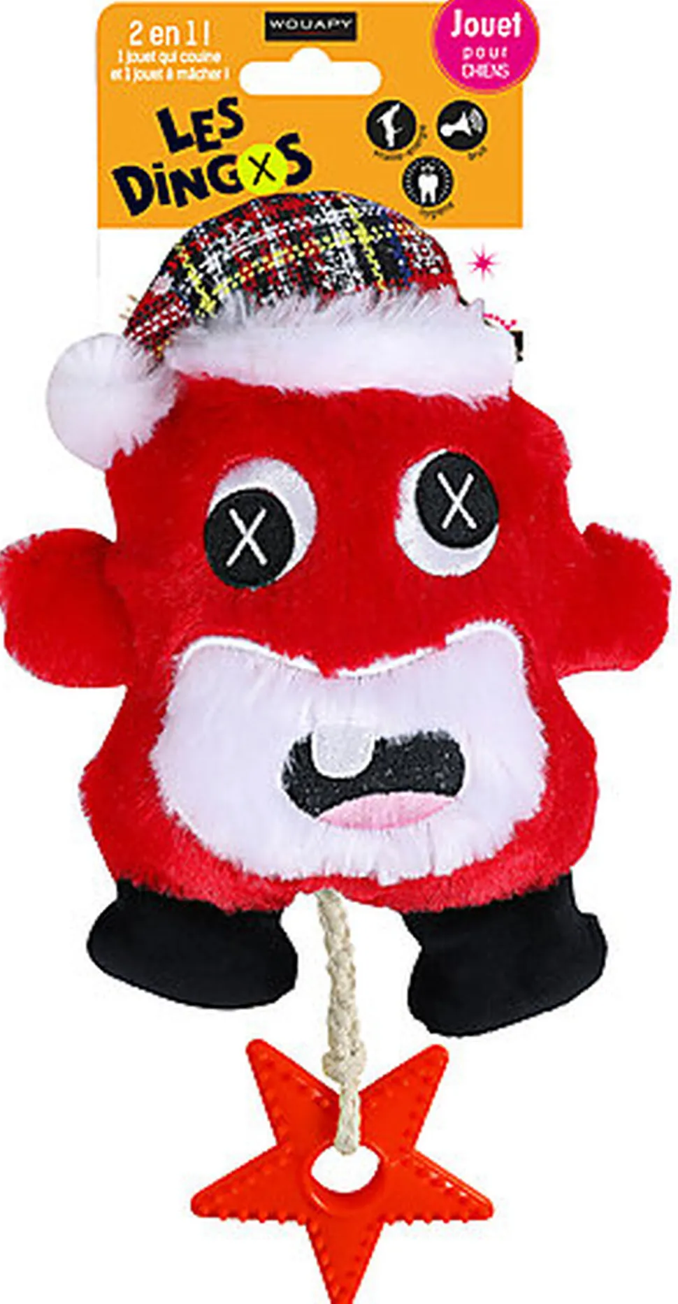 Jouet pour chien en tissu avec un sabot de veau séché 100% naturel, fixé grâce à une cordelette. Ce jouet couine lorsque le chien le mordille, pour occuper les chiens pendant des heures.