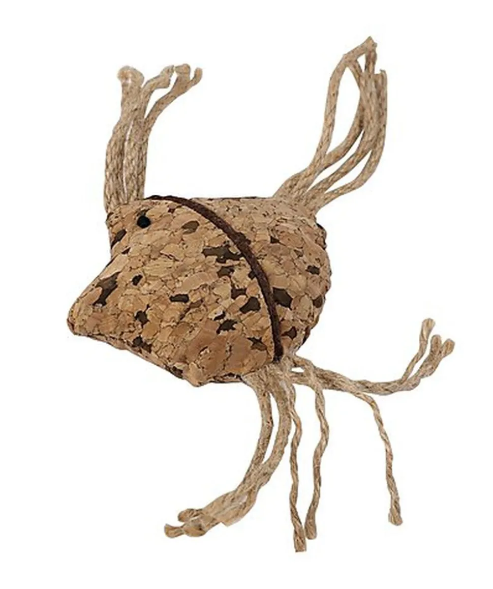 Jouet pour chat en forme de poisson en liège avec corde, pour de longues heures de jeu.