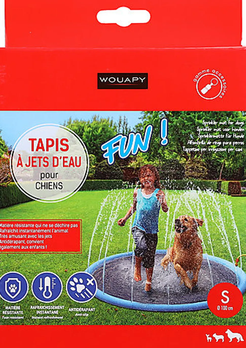 Piscine splash à jets d’eau permettant de rafraîchir votre animal de manière ludique, et convient également aux enfants.