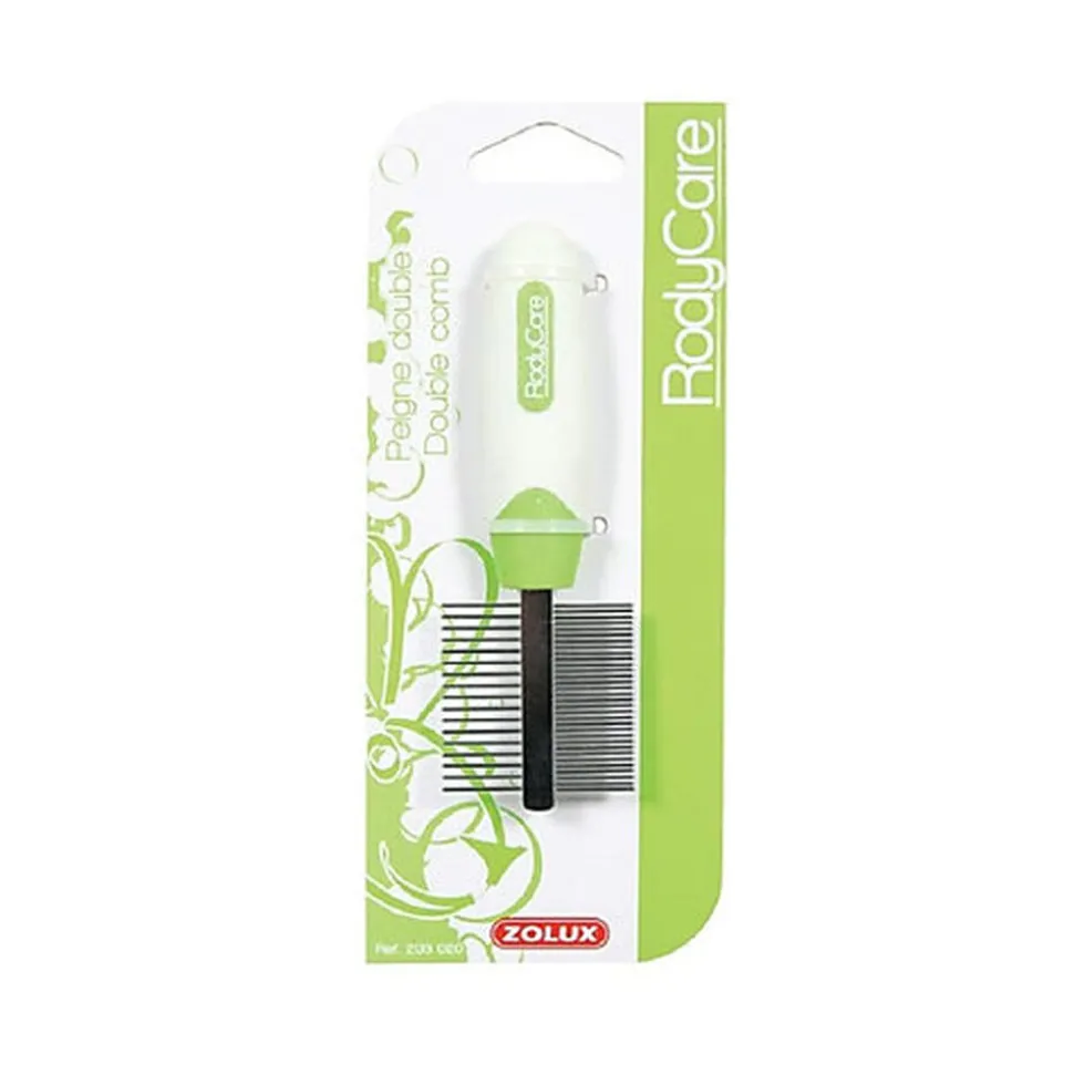 Ce peigne double possède une denture pour peigner le poil dur et touffu et une denture pour le coiffage des poils fins de votre rongeur.