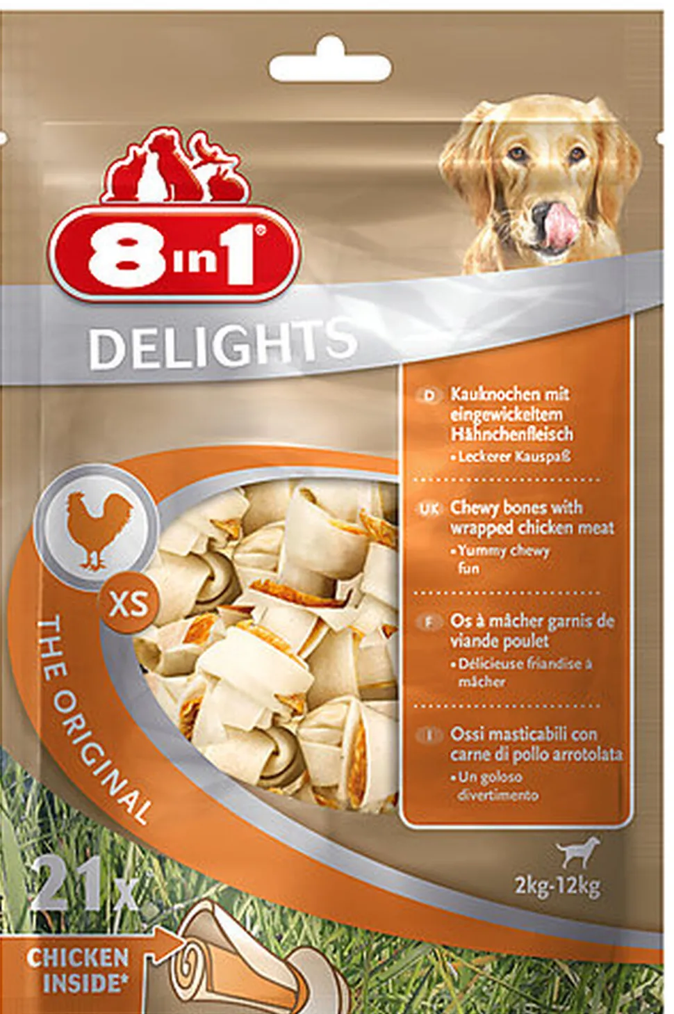 | Composition | lamelles de poulet enrobees d os a macher |