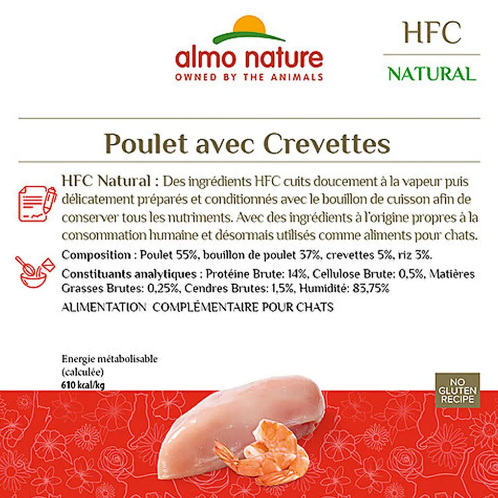 La qualité Almo Nature est désormais encore plus transparente : L’acronyme HFC certifie les ingrédients composant les recettes comme étant à l’origine propres à la consommation humaine. Élaborées avec peu d’ingrédients simplement cuits dans un bouillon, les recettes HFC Natural sont idéales pour l’hydratation de votre chat. HFC Natural : Les recettes traditionnelles les plus célèbres d’Almo Nature.