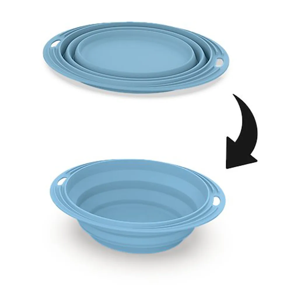 Bol de voyage pliable utile lors des voyages, promenades, vacances, car lorsqu’il est fermé, il est plat et prend très peu de place.