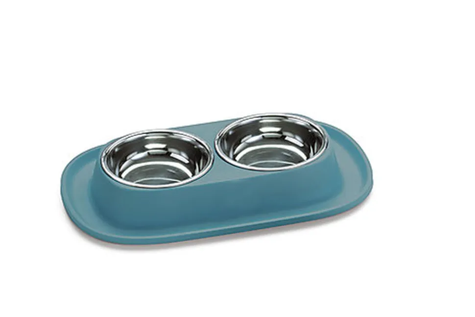 Gamelle double en matériau souple et rebord, pour récupèrer les projections de croquettes ou d’eau, bol en inox amovible pour un nettoyage facile.