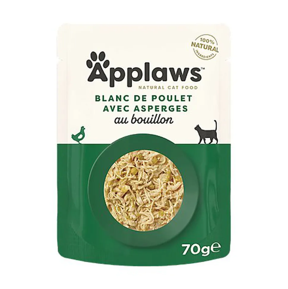 | Composition | blanc de poulet 70%, bouillon de poulet, asperges 5%, riz. |