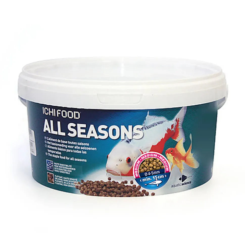 Fabriqué à partir de matières premières de haute qualité garantissant une assimilation et des performances optimales, il est enrichi en vitamines, minéraux et pigments naturels, garantissant santé et couleurs éclatantes. Ichi Food All Seasons est avantageusement complété ou remplacé par le programme saisonnier d’Aquatic Science (Ichi Food Winter, Summer et Excellent), développé pour répondre aux besoins variables des poissons en fonction de la température.