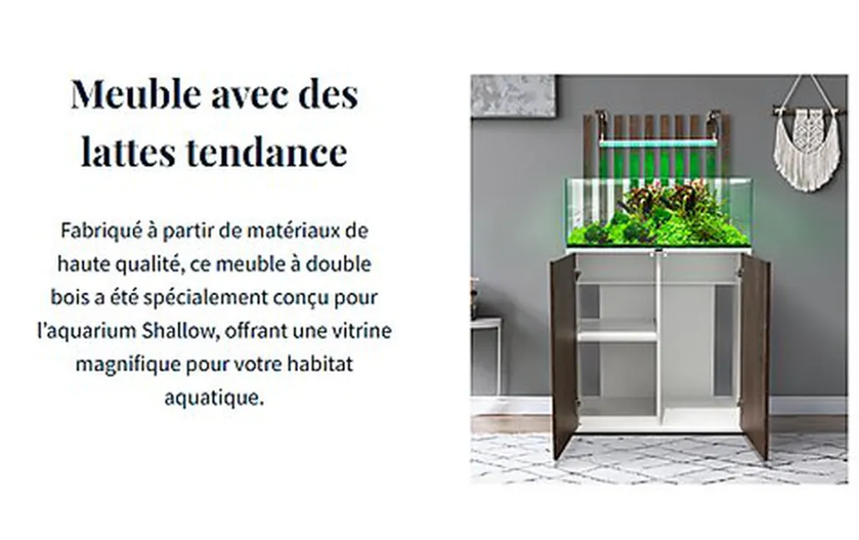 Le Shallow est un aquarium vendu avec son meuble alliant beauté et praticité grâce à un design élégant et sans rebords afin de vous offrir une vue panoramique de l’intérieur. Son meuble assure également un fonctionnement fluide et silencieux, avec une fermeture délicate ainsi qu’une praticité grâce au système LED intégré à l’intérieur.