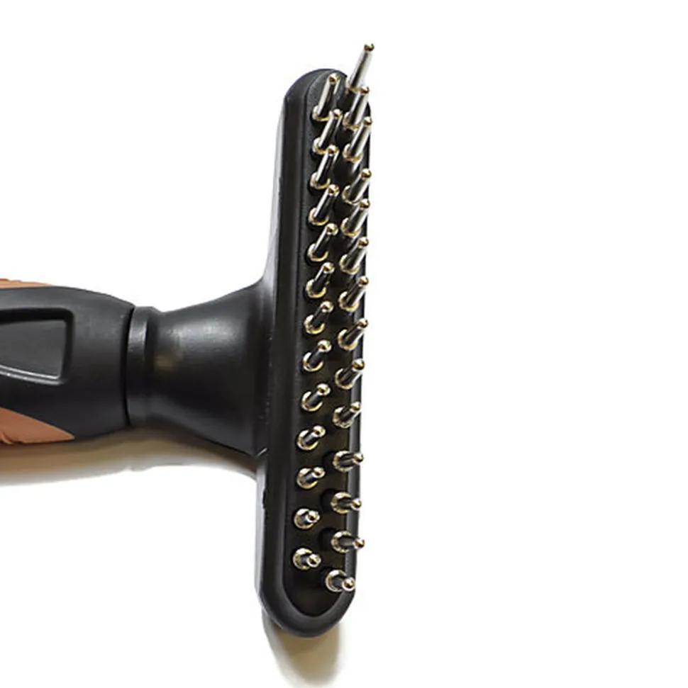 La double rangée est idéale pour les fourrures longues ou épaisses, les dents sont en acier inoxydable et rotatives pour assurer un démêlage en douceur.