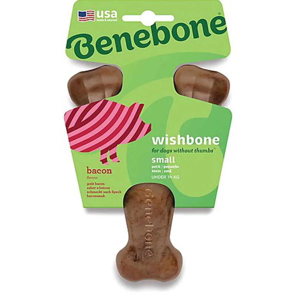 Résistants à la mastication intensive, les os WISHBONE sont disponibles en deux saveurs : poulet et bacon.