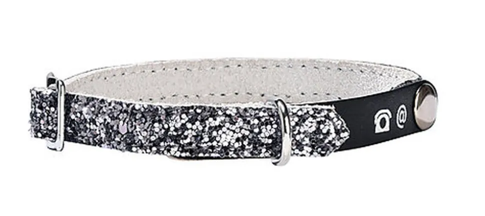 Que la fête commence ! Un collier plein de paillettes pour briller jusqu’au bout de la nuit. La languette porte-adresse constitue le véritable atout de ce collier, elle vous permet d’écrire vos coordonnées et donc d’être contacté si vous perdez votre chat.
