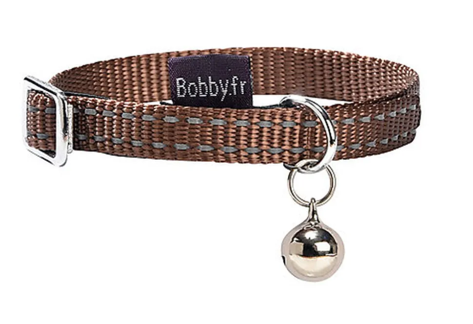 Collier chat en nylon tressé surpiqué d’un point sellier réfléchissant permettant à votre chat d’être vu facilement.
