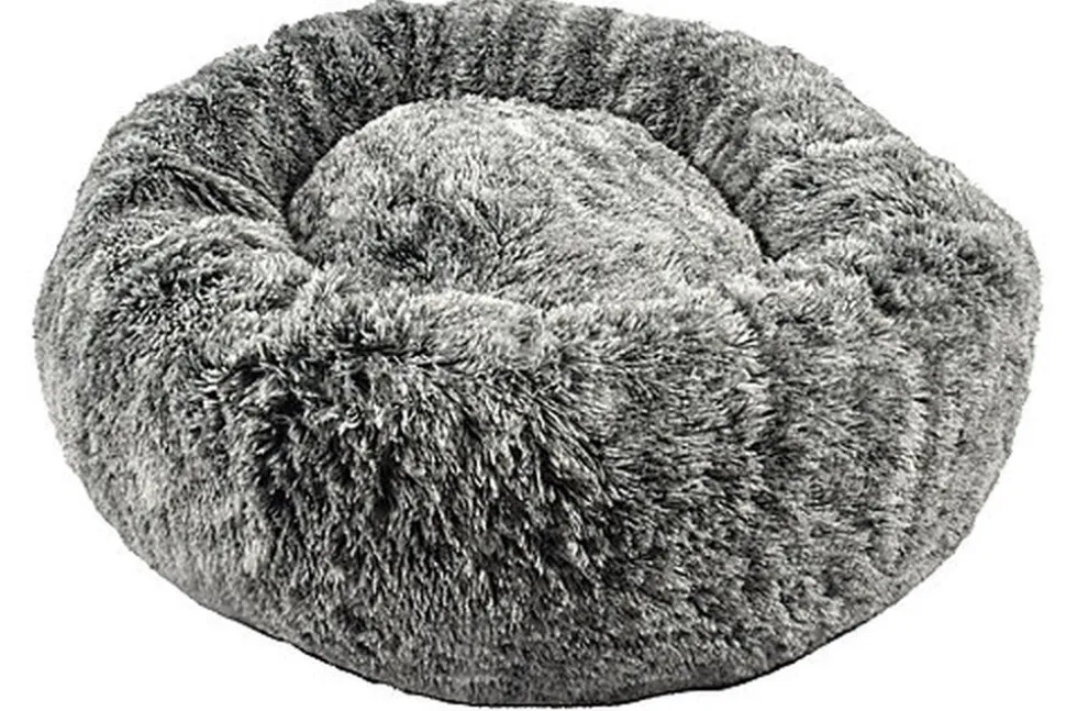 Nid douillet ultra moelleux et confortable en forme de donut pour chien, avec une fourrure synthétique longue ultra douce.