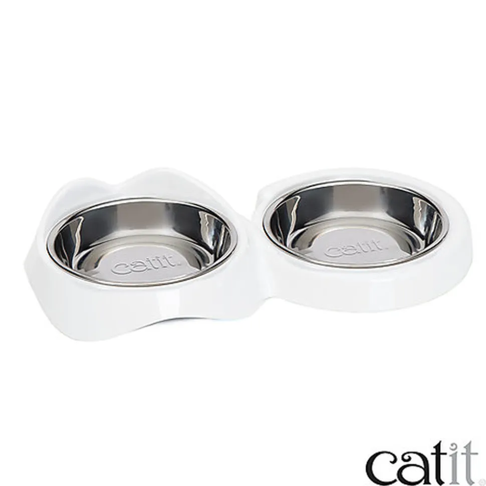 Bol double à nourriture avec design idéal pour les chats, conçu pour les moustaches délicates des chats .