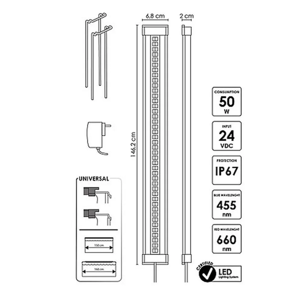 | Plus produit | Pour ENPro 150; Rouge et Bleu spéciale plantes unviersel, pour aquarium de 130 à 150 cm |