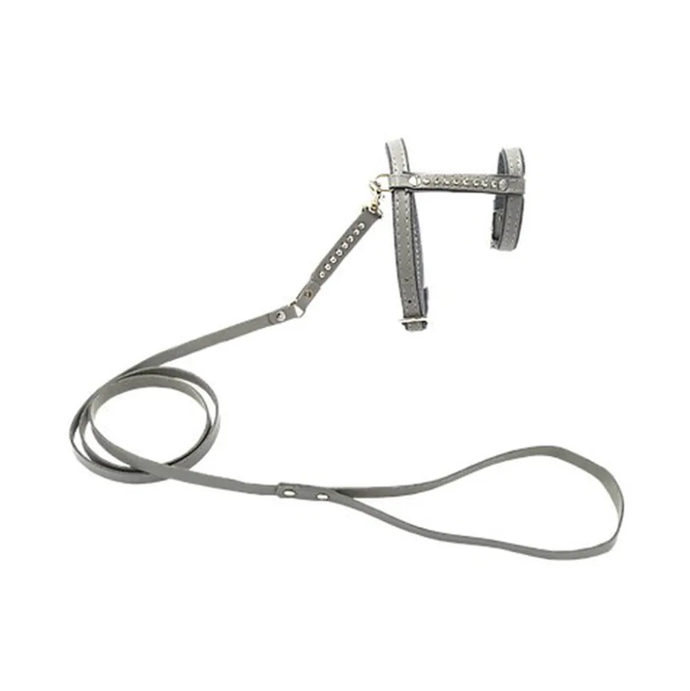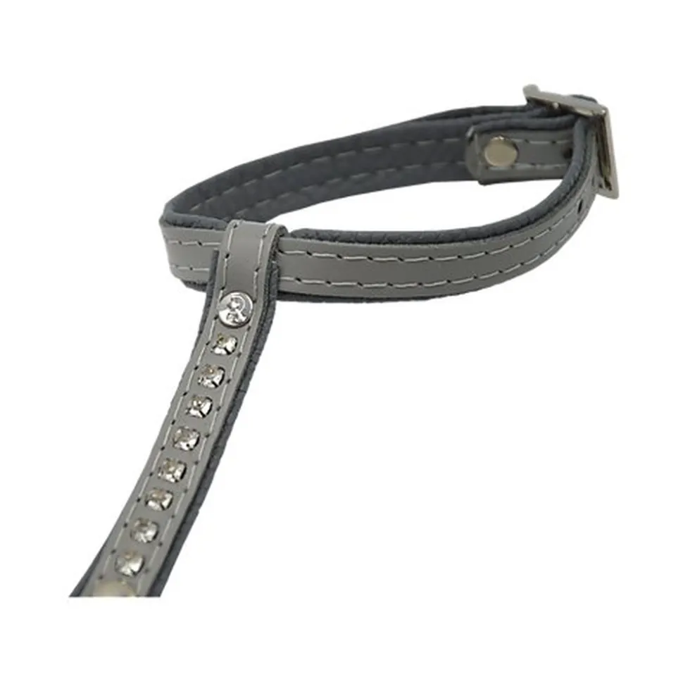 Harnais avec strass pour chat réglable, 100% cuir nappa de vache, souple et résistant, tanné en Italie. S’entretient avec une simple graisse à cuir incolore notamment en cas d’humidité.