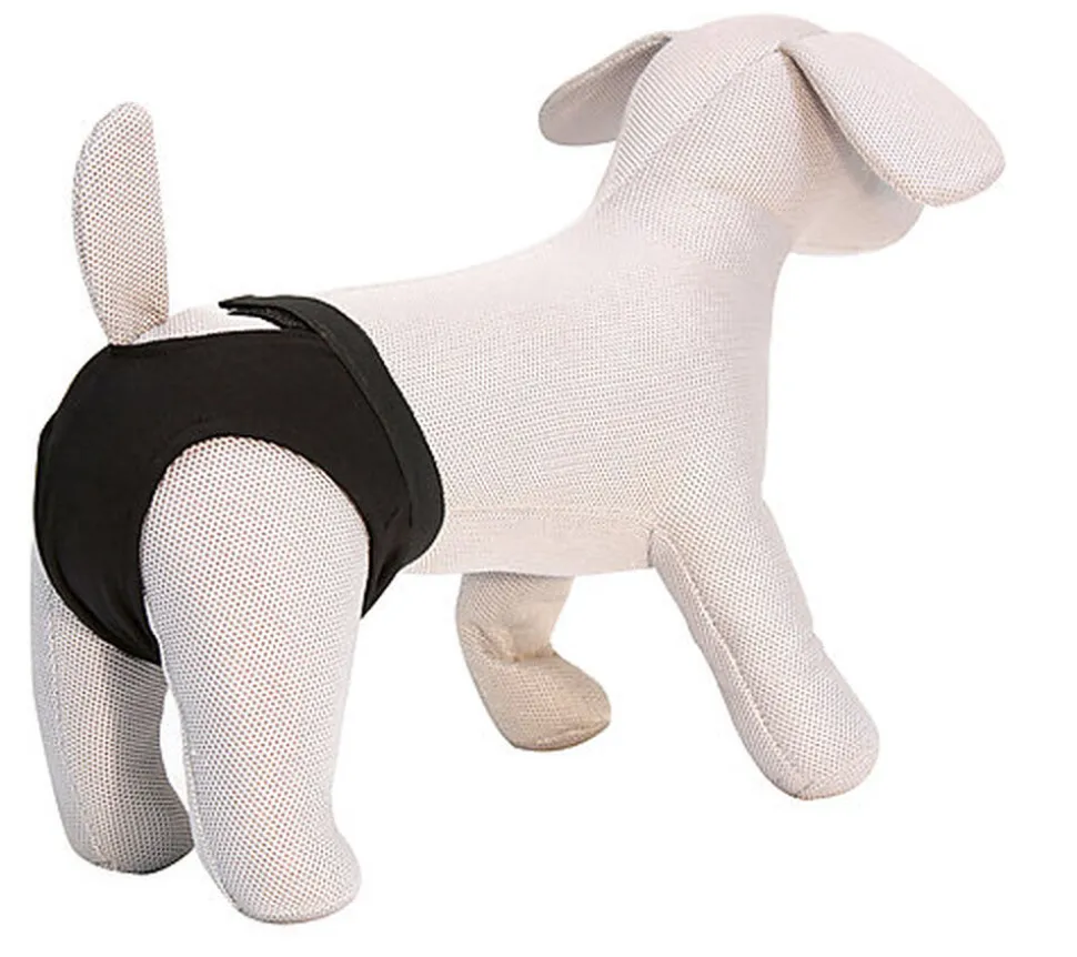 Culotte hygiénique pour chien confortable, en coton et élastique, avec fermeture Velcro réglable. Douce et confortable, avec un trou pour la queue et des attaches intérieures pour la protection hygiénique.