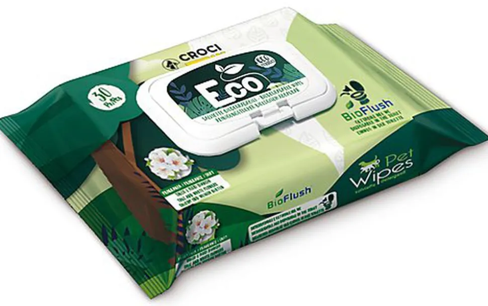 Les lingettes Eco PetWipes pour chiens et chats sont des lingettes nettoyantes fabriquées avec un tissu certifié Oeko-tex 100 E FSC.