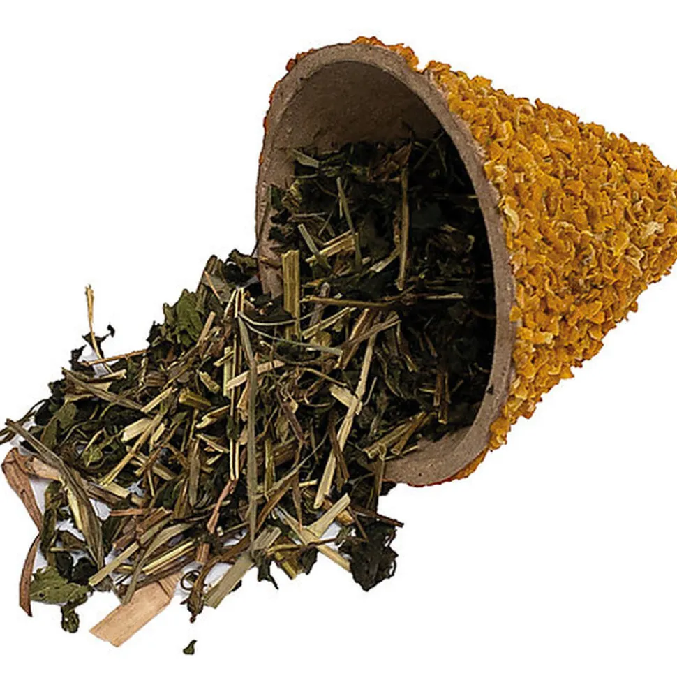 Aliment complémentaire Crop & Crok Snack naturel en forme de cône à la calendula pour lapin/rongeur composé de 40% de betterave rouge, 3,5% d’ortie, mélange d’herbe, fécule de pomme de terre.
