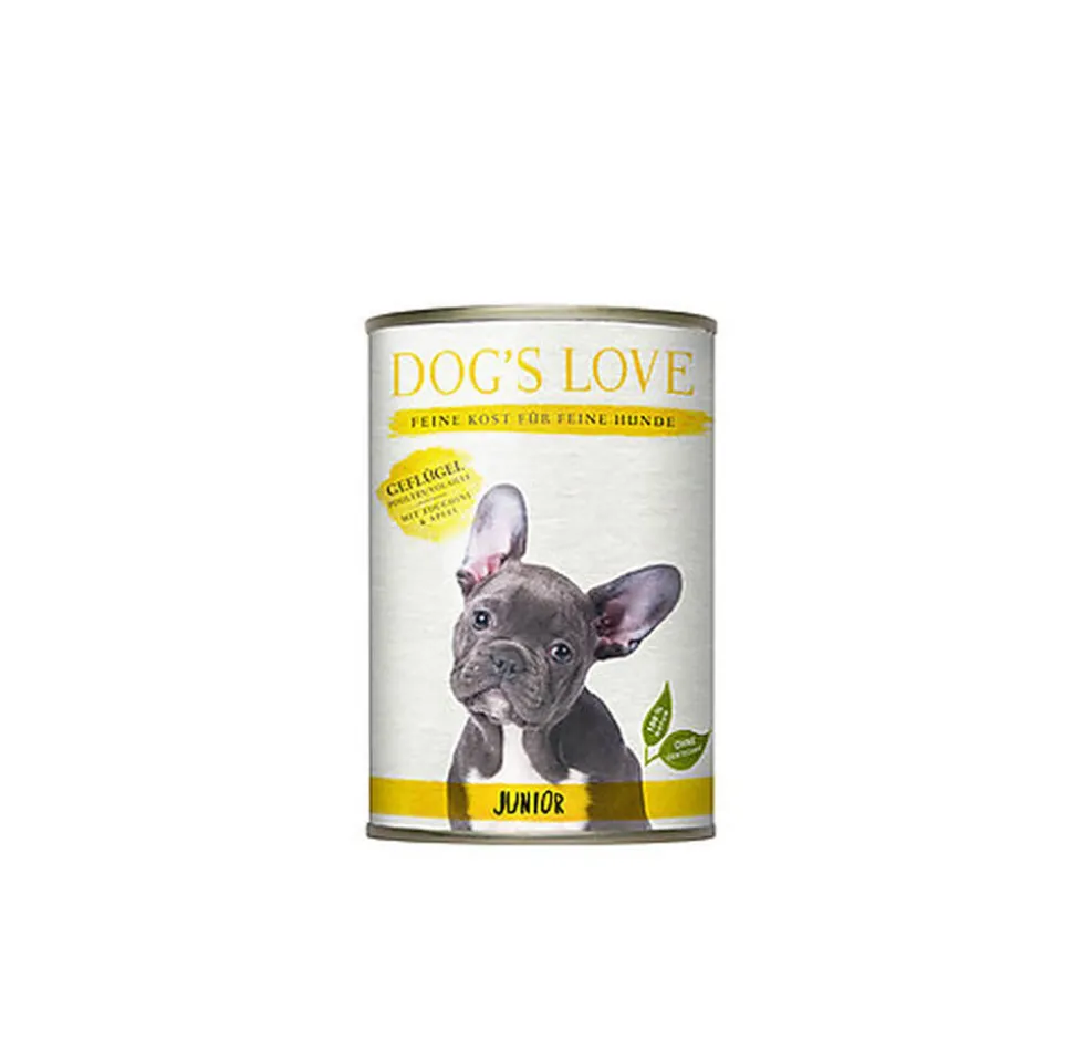 | Plus produit | Toute la gamme 100% naturelle de Dog’s Love est constituée d’aliments de premiers choix de haute qualité. Chaque recette se compose de plus de 55% de viande, de 25% de légumes et de 10% de fruits. Toute l’alimentation Dog’s Love est SANS OGM, SANS gluten, SANS céréales, SANS soja, SANS sucres ajoutés, SANS farine d’os, SANS déchets d’abattoirs, sans colorants et sans conservateurs. Spécialement conçue pour les chiots, la gamme JUNIOR est renforcée en calcium |