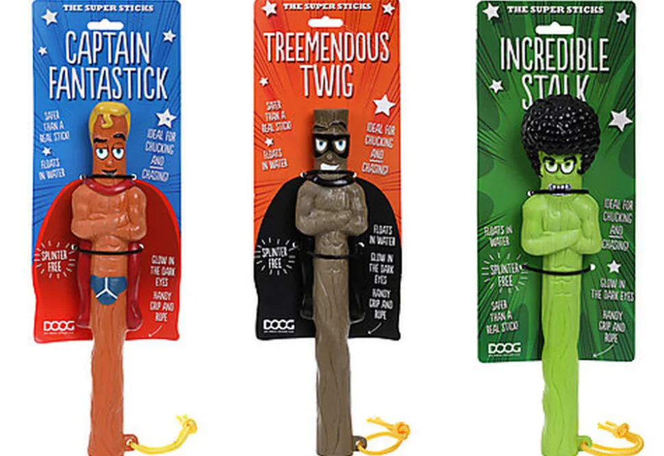 La famille STICK s’agrandit avec l’arrivée de superhéros : les SUPERSTICK, il y en a pour tous les goûts et toutes les occasions ! Attention : les jouets STICK sont des jouets à lancer, ils ne sont pas conçus pour résister à la mastication accrue.