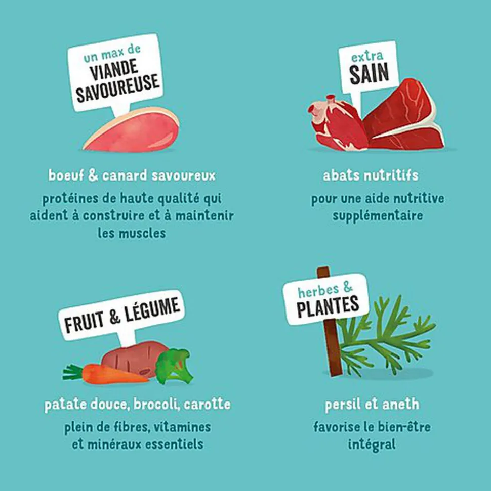 | Plus produit | Des aliments naturels, sans céréales et savoureux bons pour eux, bien pour nous et notre planète |