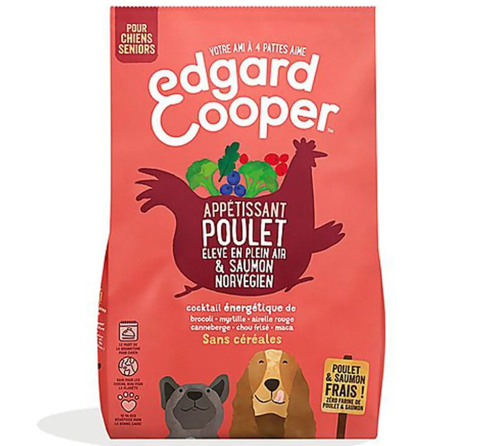 | Composition | Poulet frais 35 %, patates douces, pois, saumon frais 5%, graines de lin, protéines de pois, sauce à base de poulet, minéraux, manno-oligosaccharides (MOS), fructo-oligosaccharides (FOS), brocoli 0,04 %, myrtilles 0,04 %, airelles rouges 0,04 %, canneberge 0,04 %, chou frisé 0,04 %, maca 0,04 %, fleurs de calendula, orties, feuilles de mûrier, fenouil, carvi, camomille, mélisse officinale, glucosamine, sulfate de chondroïtine |