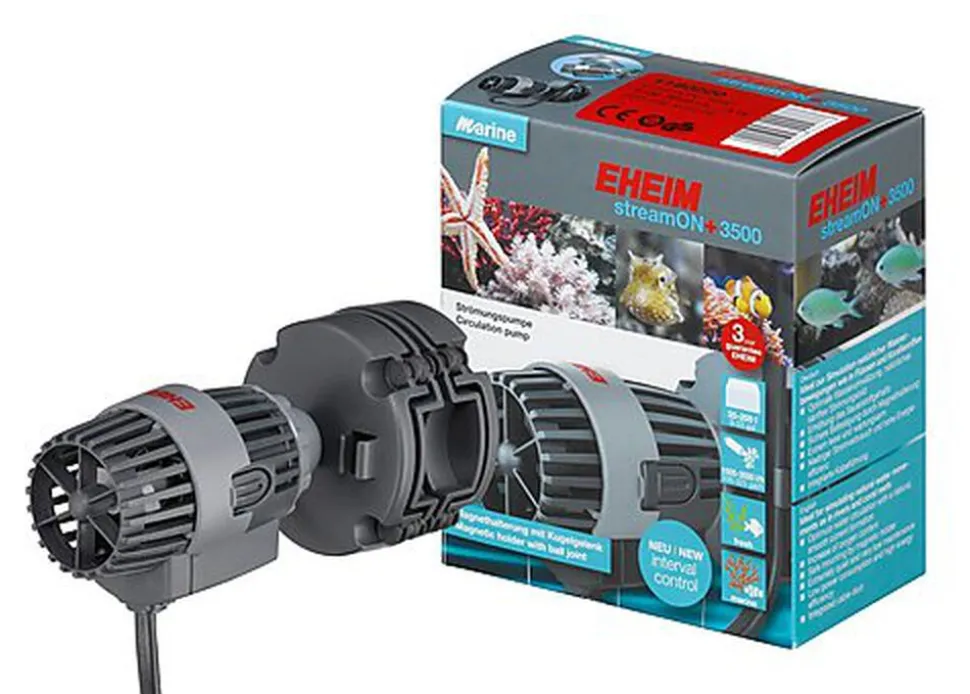 La nouvelle EHEIM streamON+ est petite, compacte et extrêmement économique. Elle est fixée avec un support magnétique et peut donc être facilement ajusté sur la plaque de verre. Pompe de circulation- Appropriée pour l’eau de mer et pour l’eau douce. Idéal pour simuler le mouvement naturel de l‘eau dans les rivières et les récifs coralliens. Circulation optimale de l‘eau, écoulement naturel et doux. Augmentation de la teneur en oxygène, génération de conditions de vie naturelles dans l’eau de mer vitale pour les coraux, bénéfique pour les poissons en eau douce.
