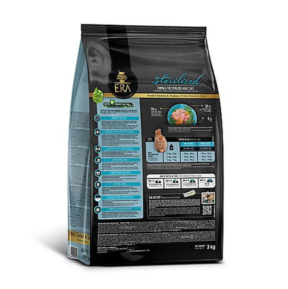 L’alimentation pour chats au poulet et à la dinde sans céréales ERA est une alimentation complète pour les chats stérilisés de toutes les races, élaborée sans céréales, ce qui la rend idéale pour ceux qui sont intolérants ou allergiques à certains ingrédients. Ce produit est préparé avec des ingrédients soigneusement sélectionnés et des ingrédients fonctionnels, notamment des probiotiques inactivés, des antioxydants naturels, du zinc et des vitamines. Tous ces éléments contribuent à renforcer le système immunitaire.