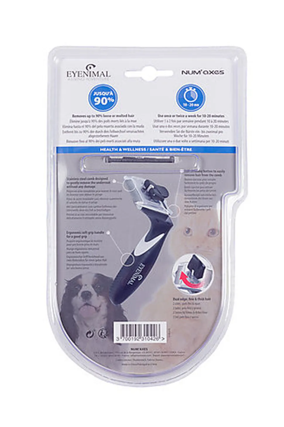 La brosse anti-mue EYENIMAL est idéale pour ôter le surplus de poils ! Elle élimine jusqu’à 90% des poils morts liés à la mue.