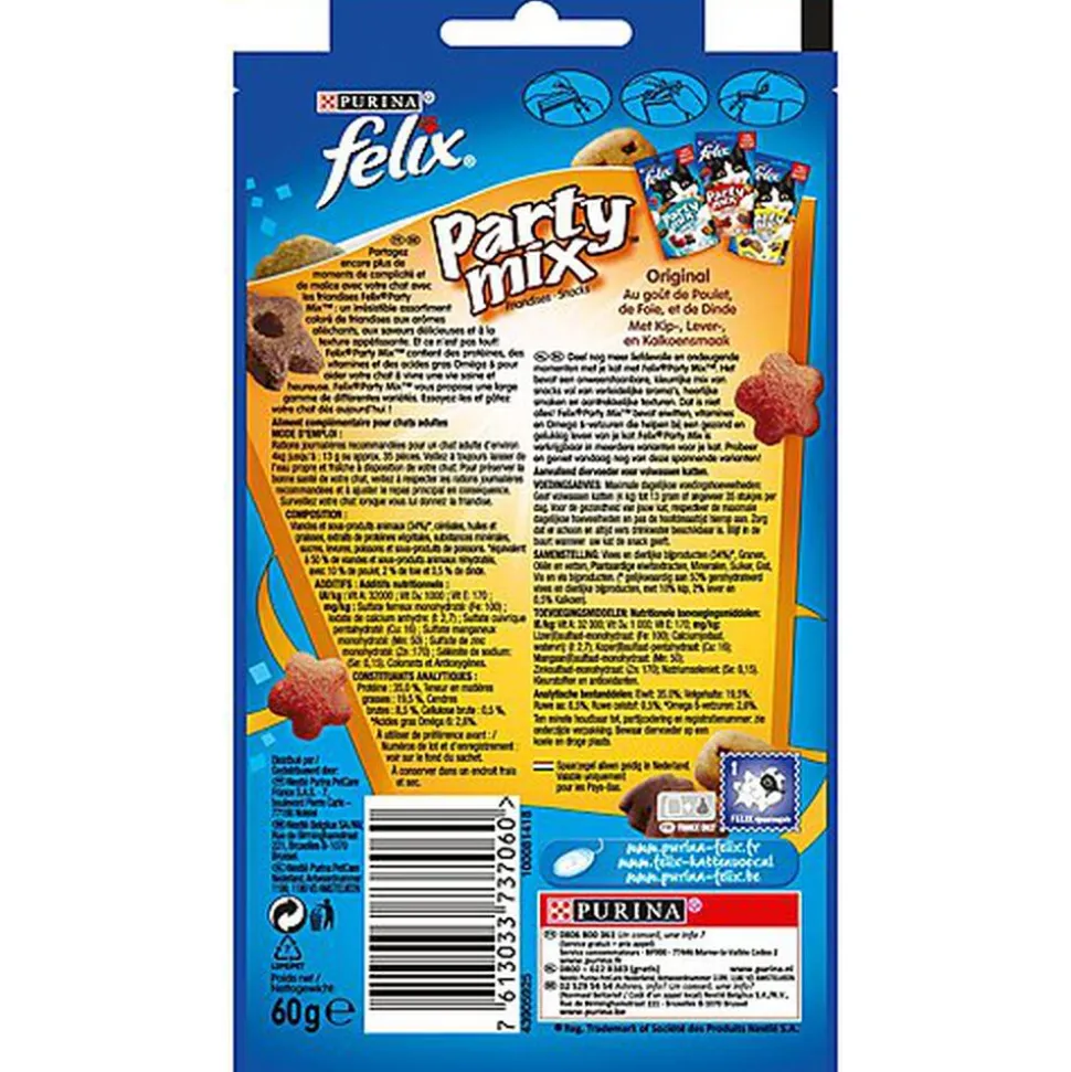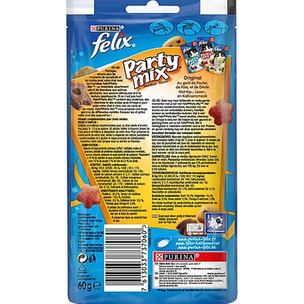 Et ce n’est pas tout! FELIX Party Mix contient des protéines, des vitamines et des acides gras Oméga 6 pour aider votre chat à vivre une vie saine et heureuse. FELIX Party Mix vous propose une large gamme de différentes variétés. Gâtez-le dès aujourd’hui !