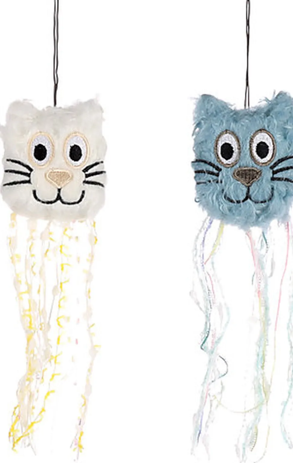 Jouet peluche et nylon en forme de petit chat avec ficelle et laine.